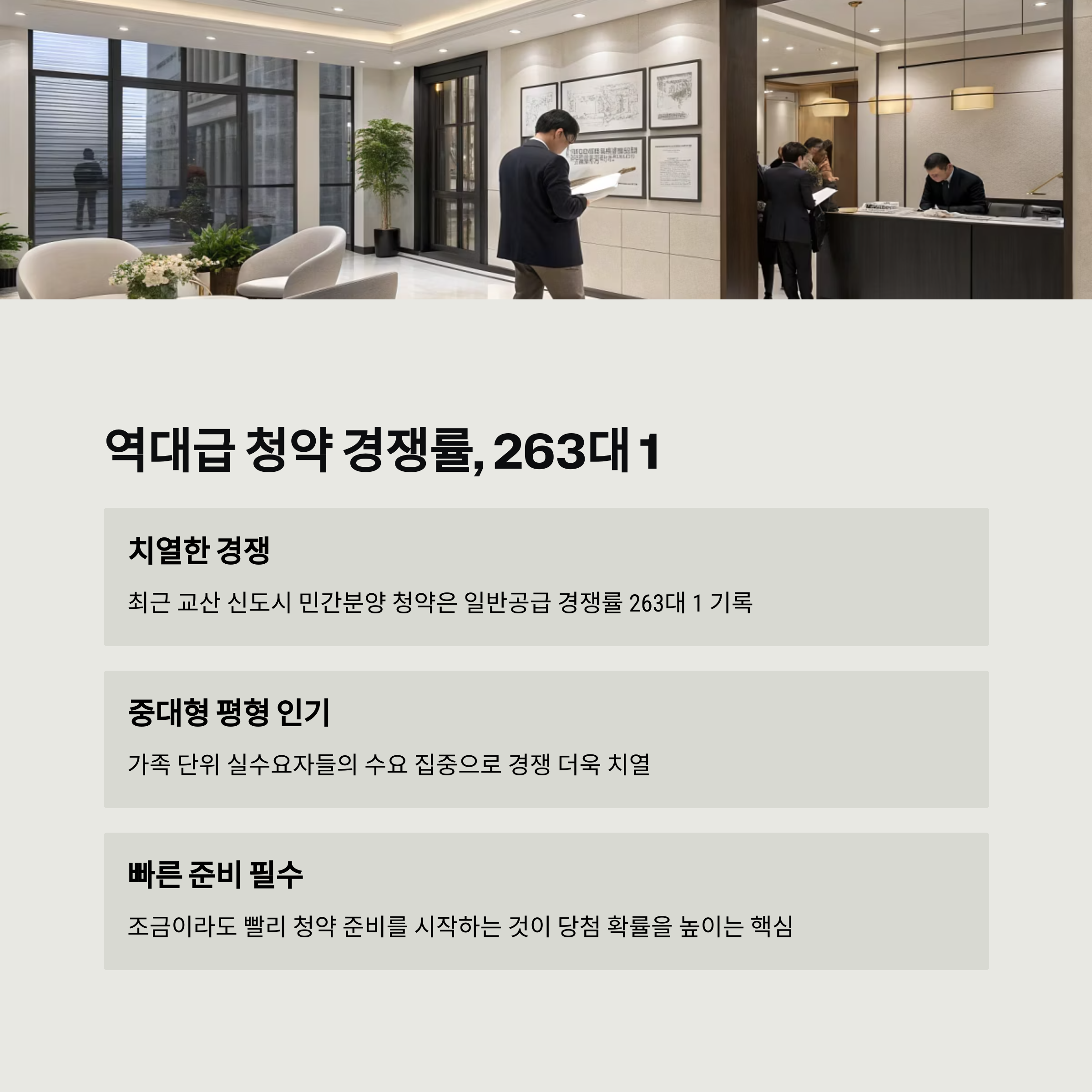 최근 교산 신도시 민간분양 청약은 일반공급 경쟁률이 263대 1을 기록했습니다.