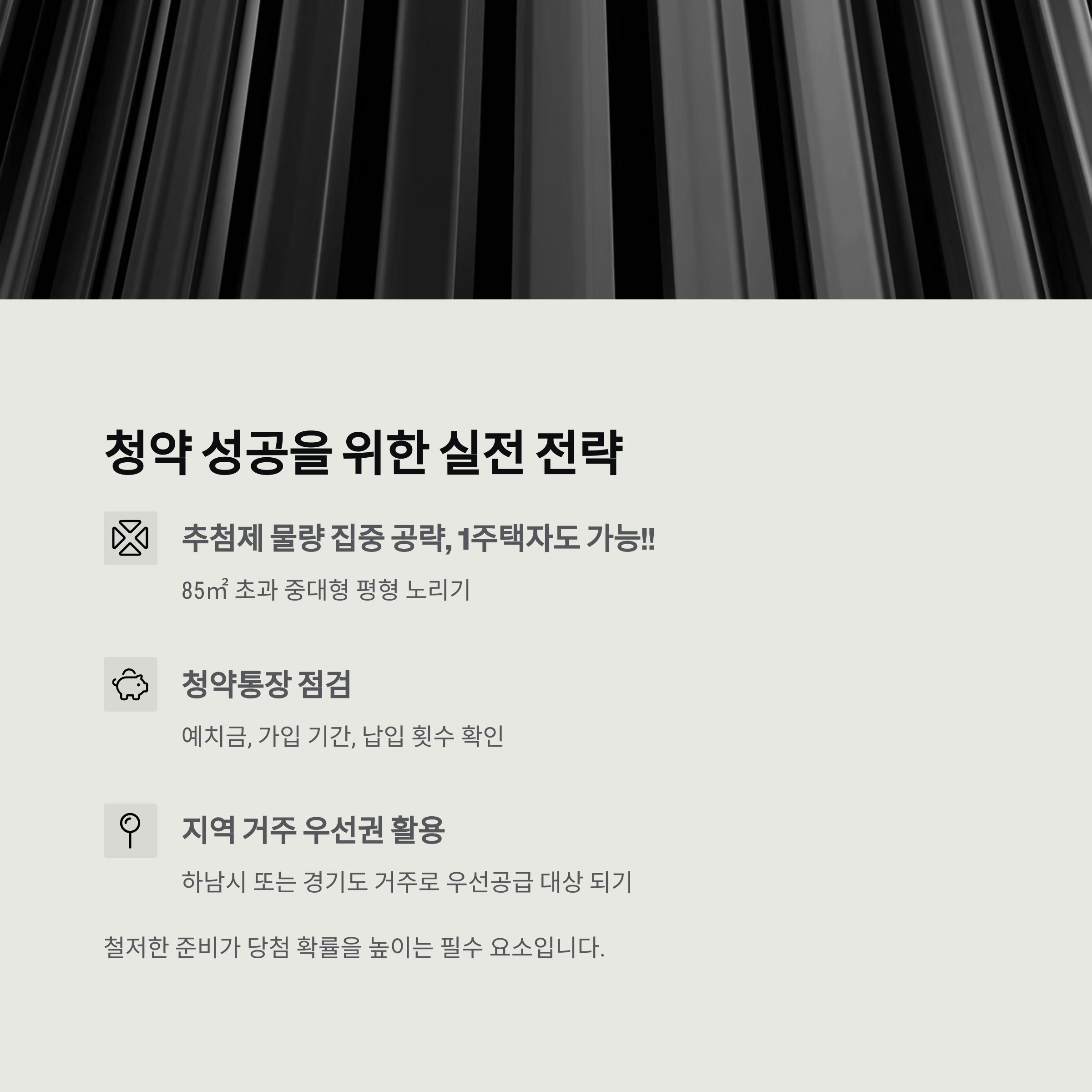 셋째, 지역 거주 우선권을 활용해 하남시 또는 경기도 거주로 우선공급 대상이 되도록 준비.
