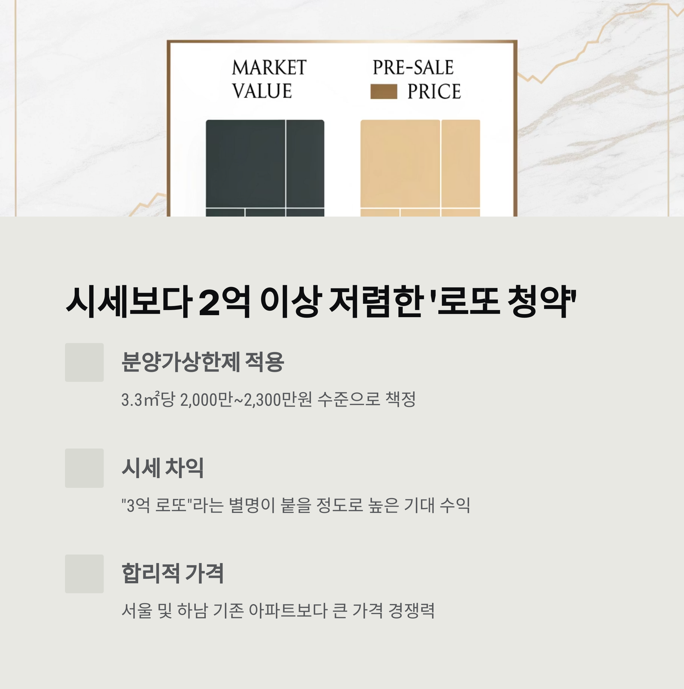 "3억 로또"라는 별명이 붙을 정도로 분양가와 시세 차익을 통한 기대 수익이 높아