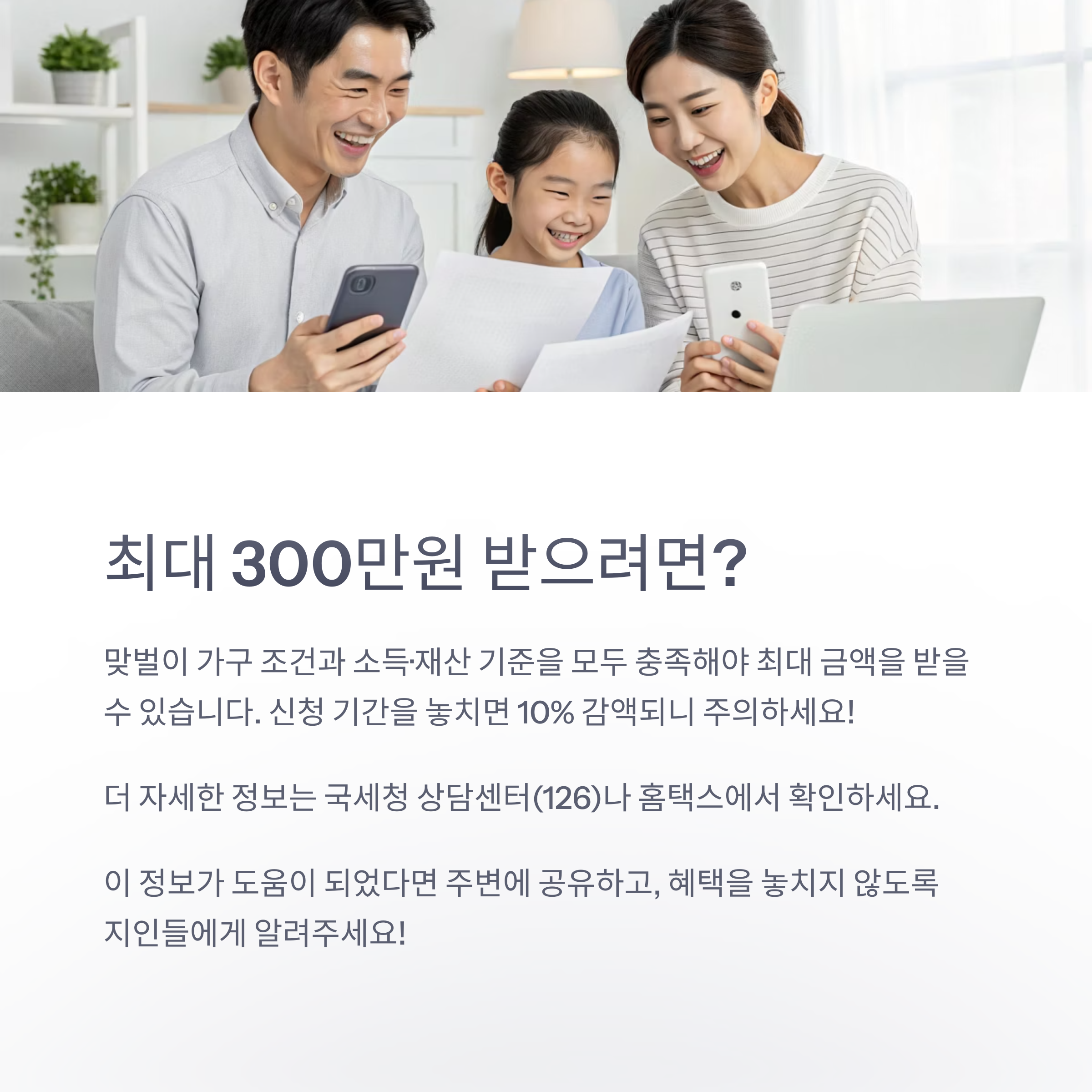 맞벌이 가구는 최대 300만원까지 받을 수 있습니다.