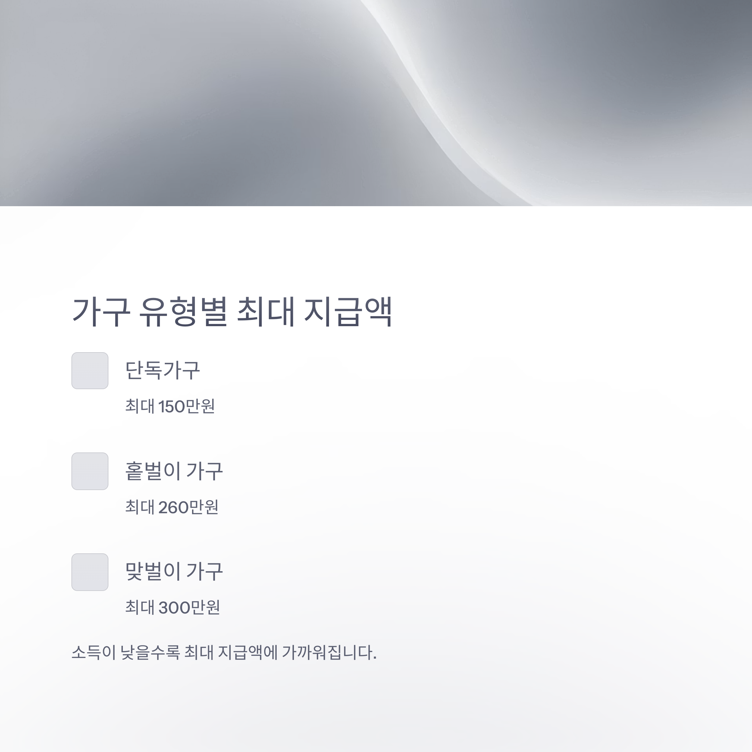 단독가구는 최대 150만원, 홑벌이 가구는 최대 260만원,