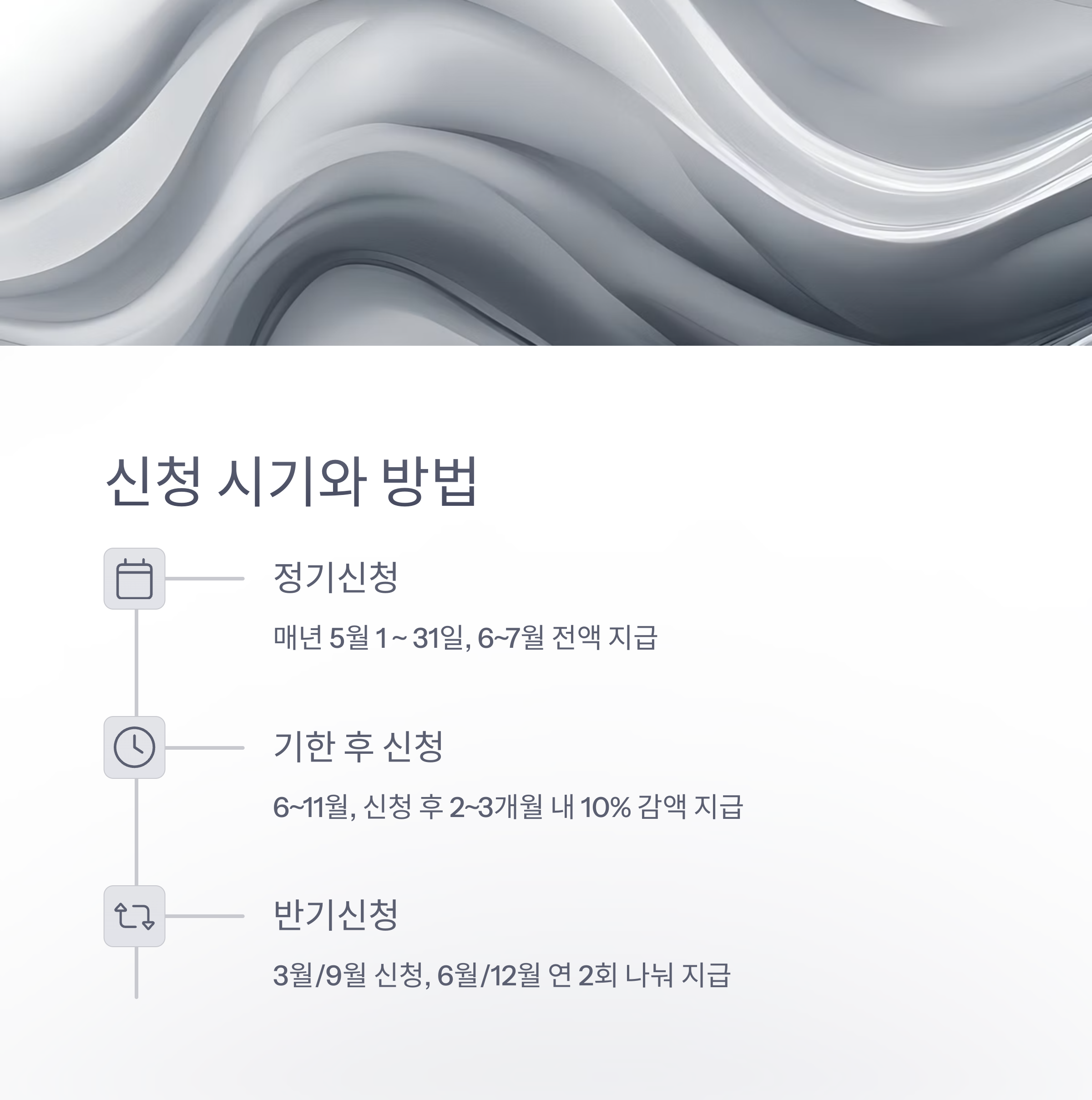 | 기한 후 신청 | 6~11월 | 신청 후 2~3개월 | 10% 감액 지급 |