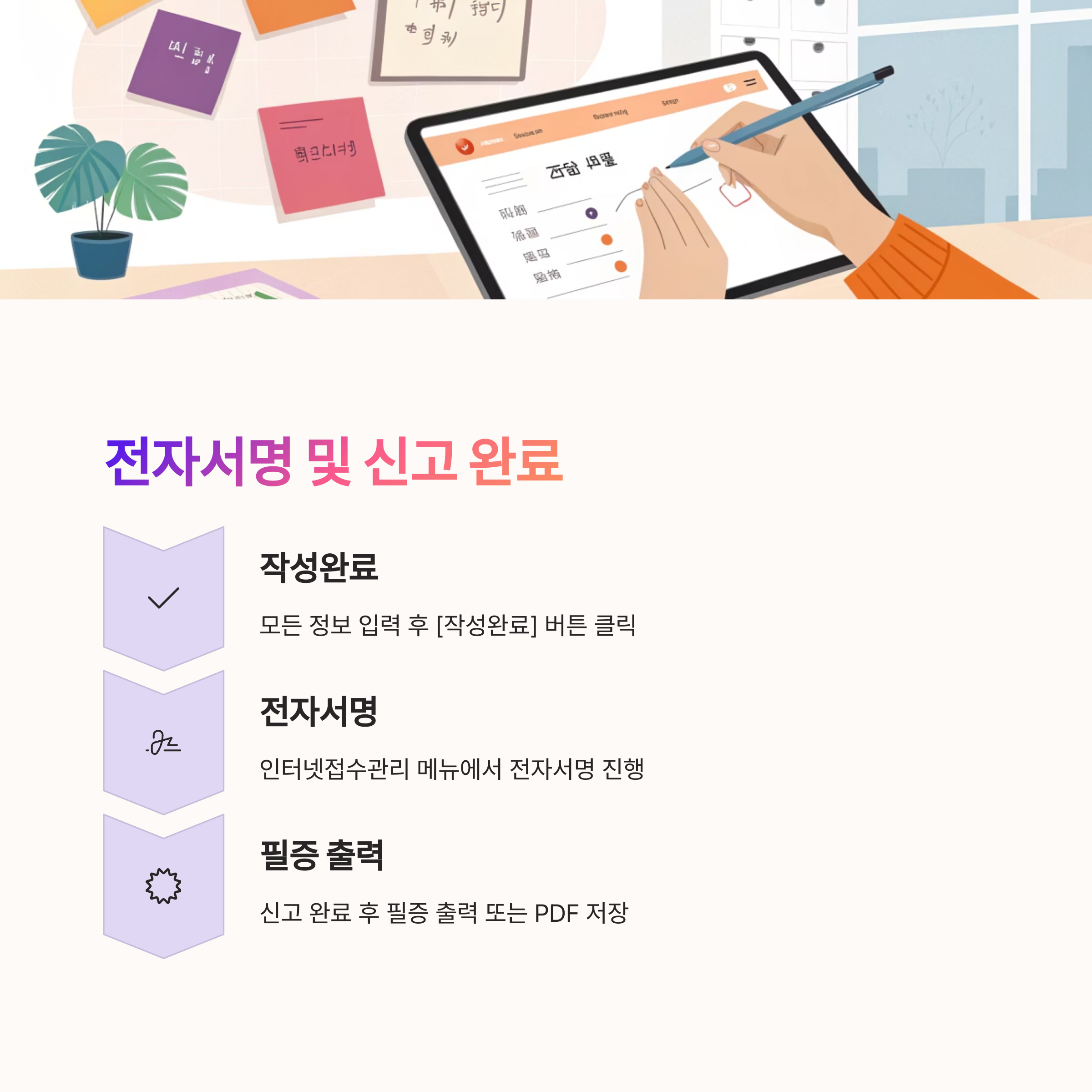 신고서 작성 완료 및 전자서명