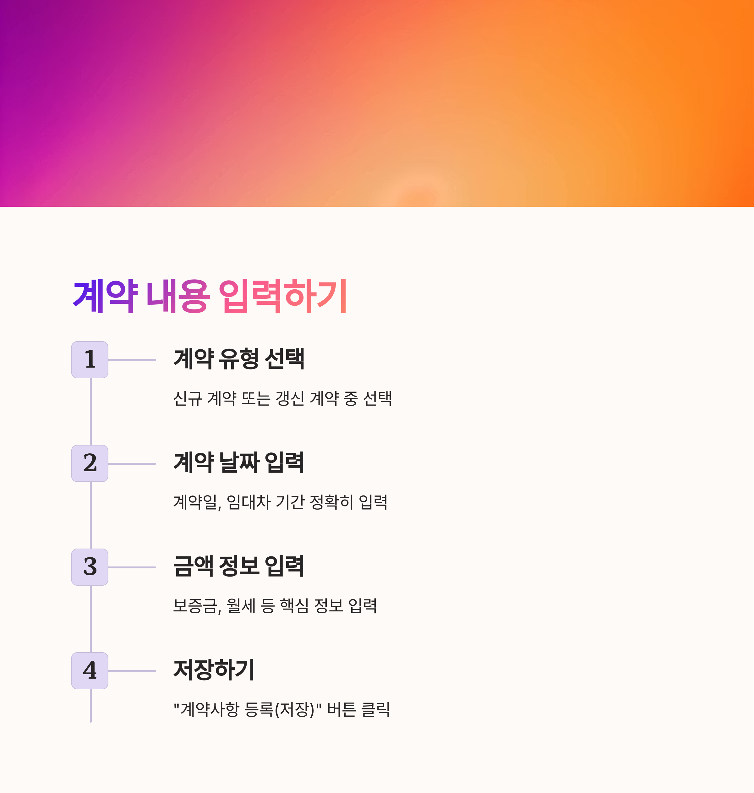 계약일, 임대차 기간, 보증금, 월세 등 핵심 정보를 정확히 입력합니다.