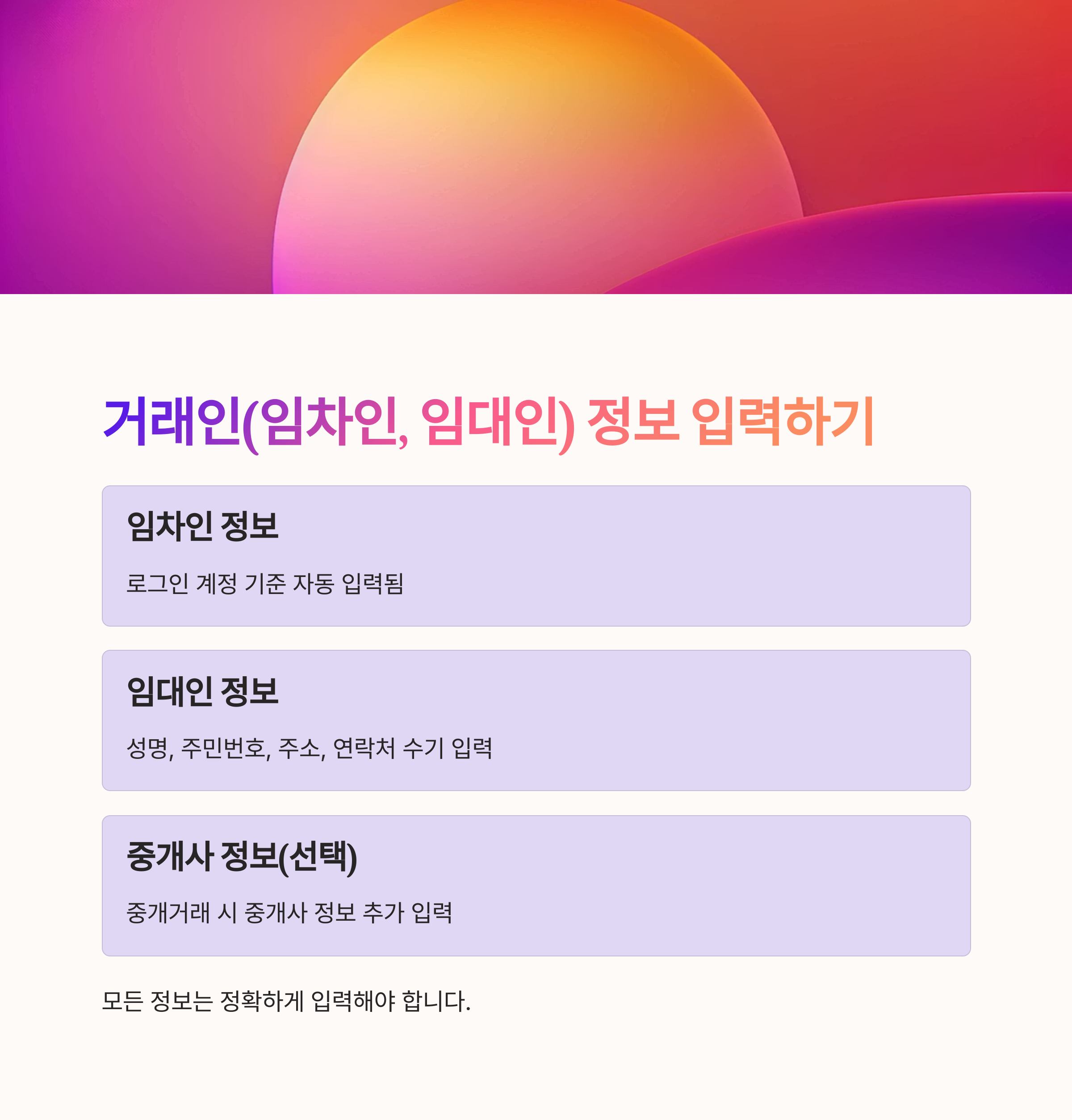 | 임대인 정보 확보 | 성명, 주민번호, 연락처 등 정확히 |