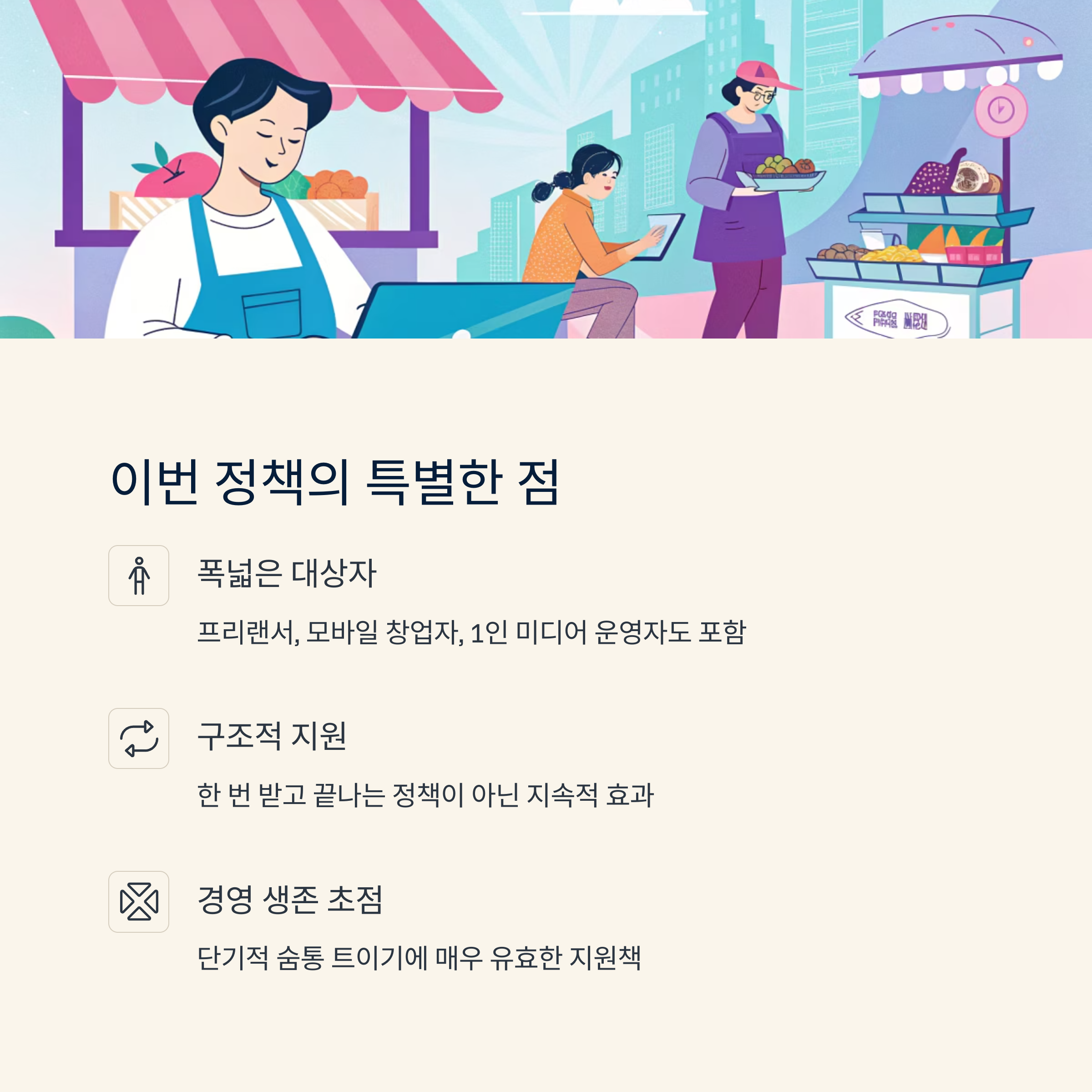 이번 정책은 ‘경영 생존’에 초점을 맞춘 지원으로, 단기적 숨통 트이기에 매우 유효합니다.