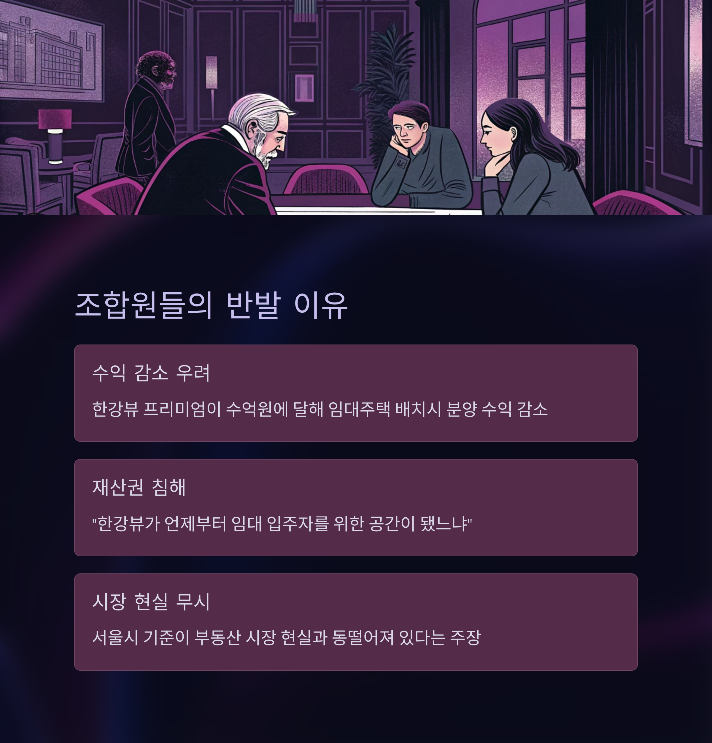 "언제부터 한강뷰가 임대 입주자를 위한 공간이 됐느냐"는 조합원들의 목소리는
