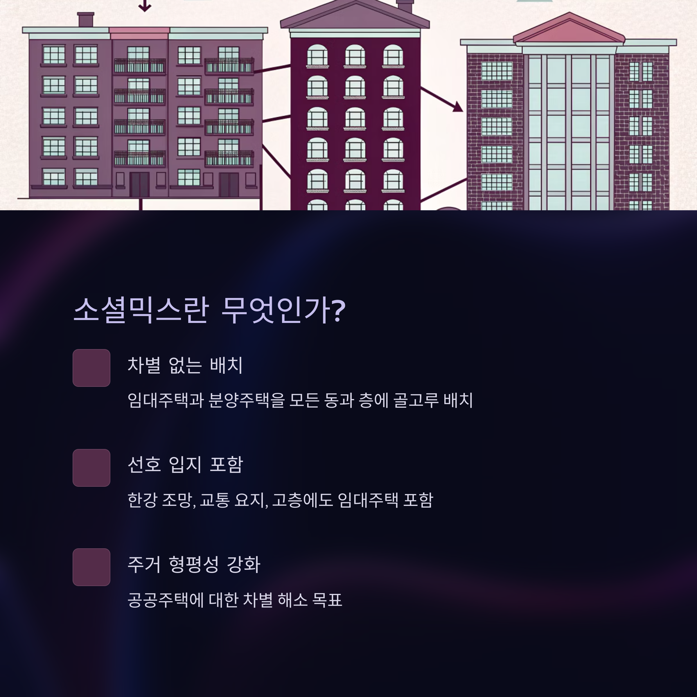 "같은 단지, 다른 조건, 차별 없는 배치"를 목표로 한 서울시 소셜믹스 정책은