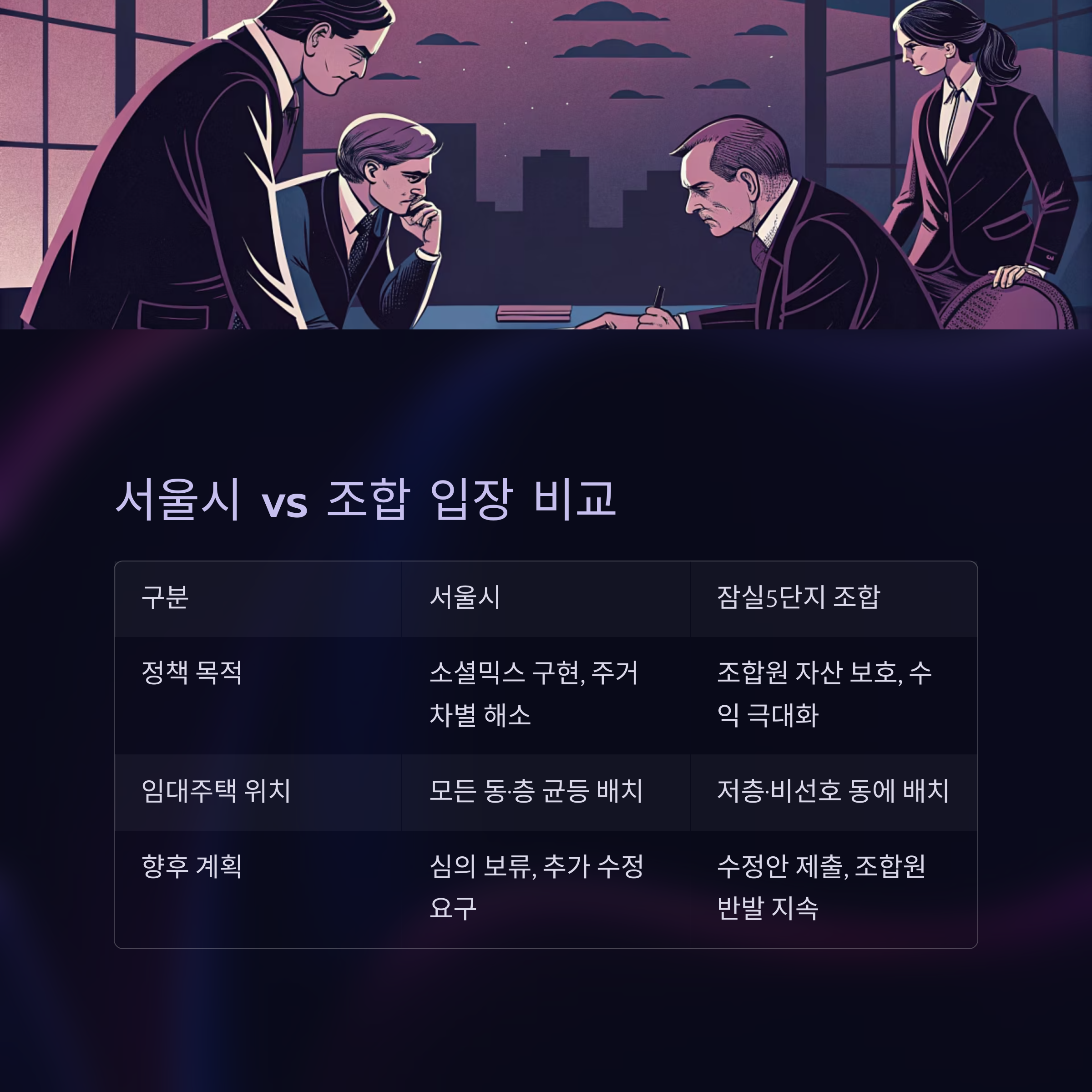| 구분 | 서울시 | 잠실5단지 조합 |
