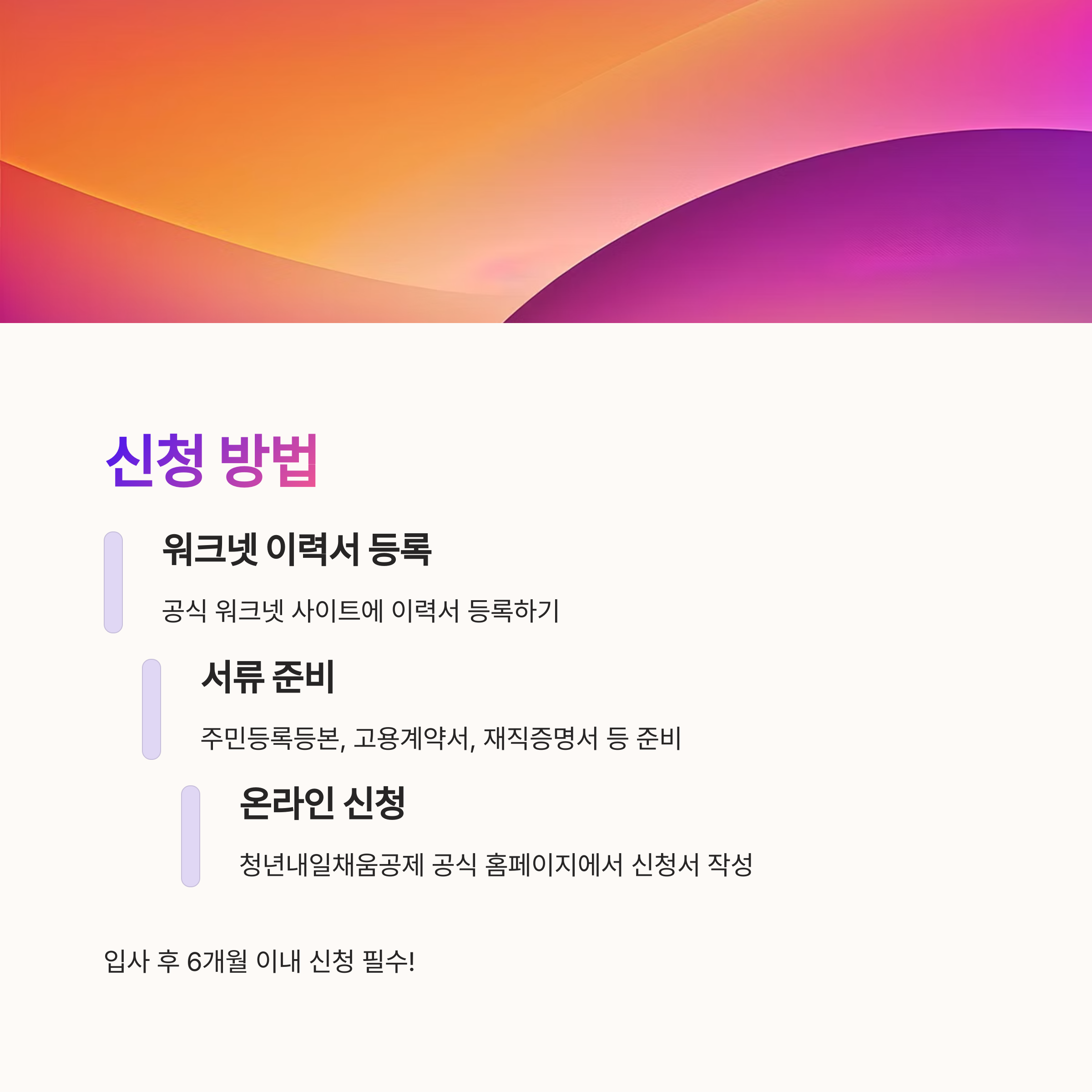 청년내일채움공제 신청은 비교적 간단하지만, 기한과 서류 준비는 철저히 해야 합니다.