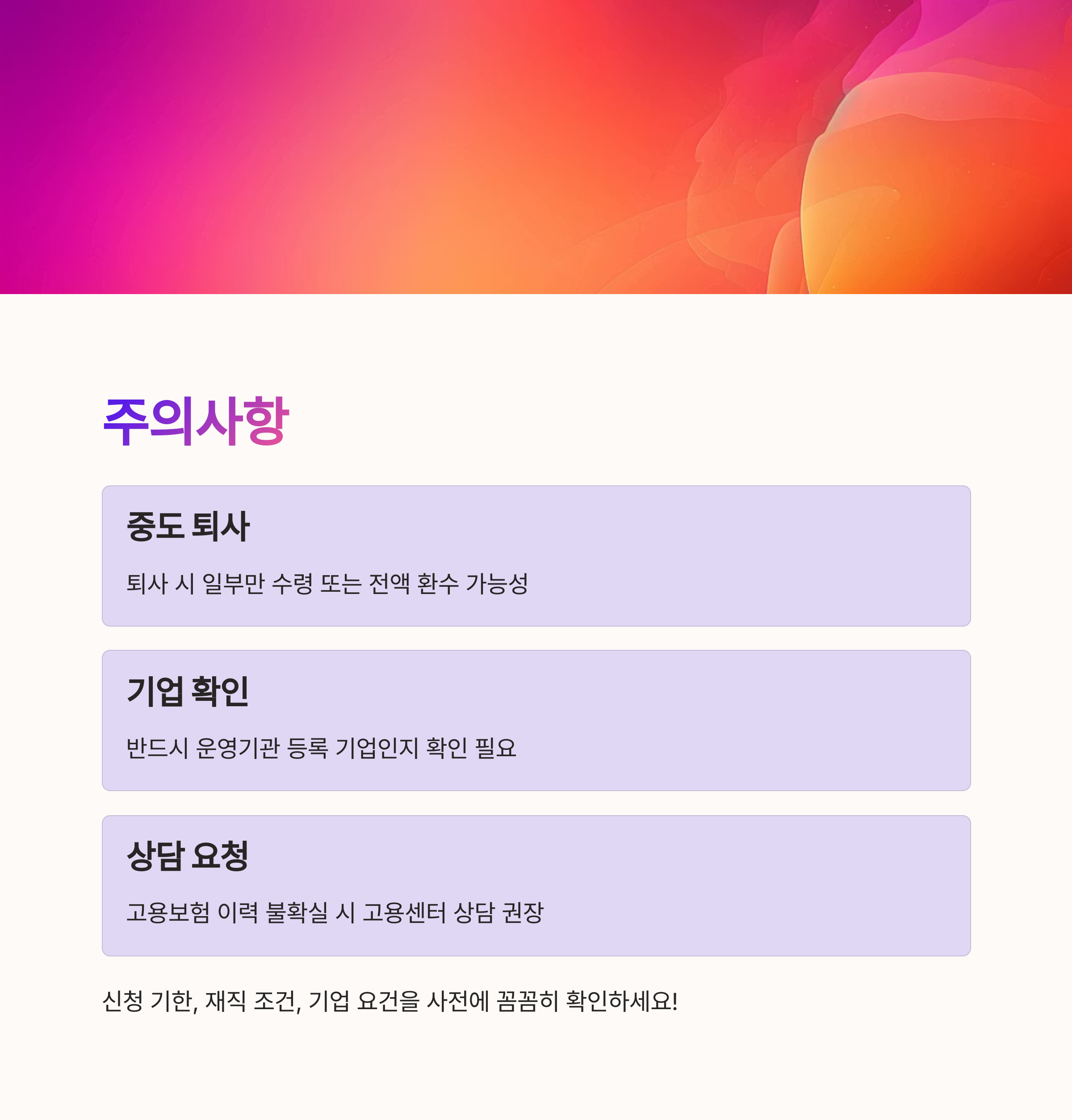 신청 기한, 재직 조건, 기업 요건 등을 반드시 사전에 체크해야 불이익을 피할 수 있습니다.