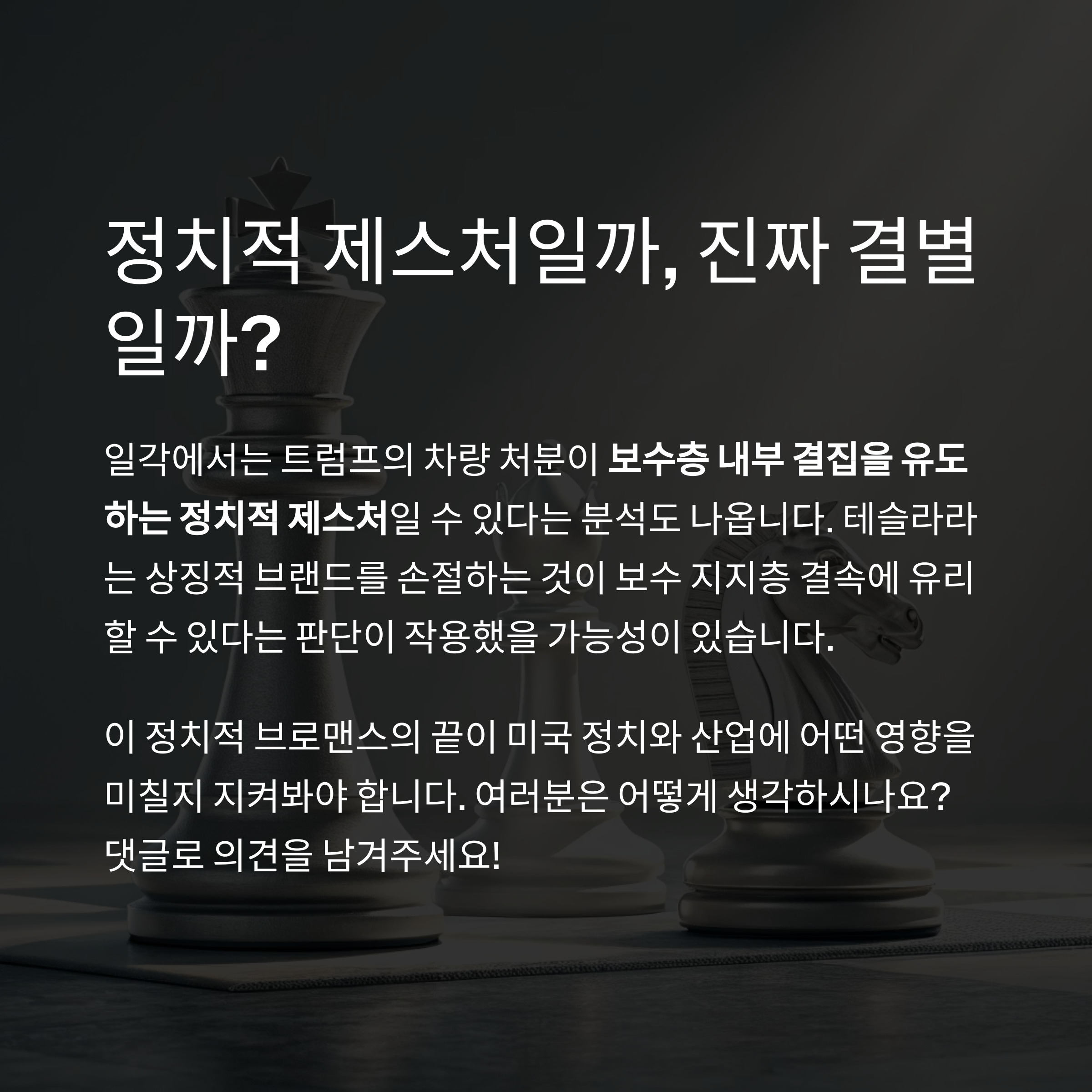 테슬라를 비롯한 관련 기업들은 정치적 리스크에 대한 대책 마련이 필요합니다.