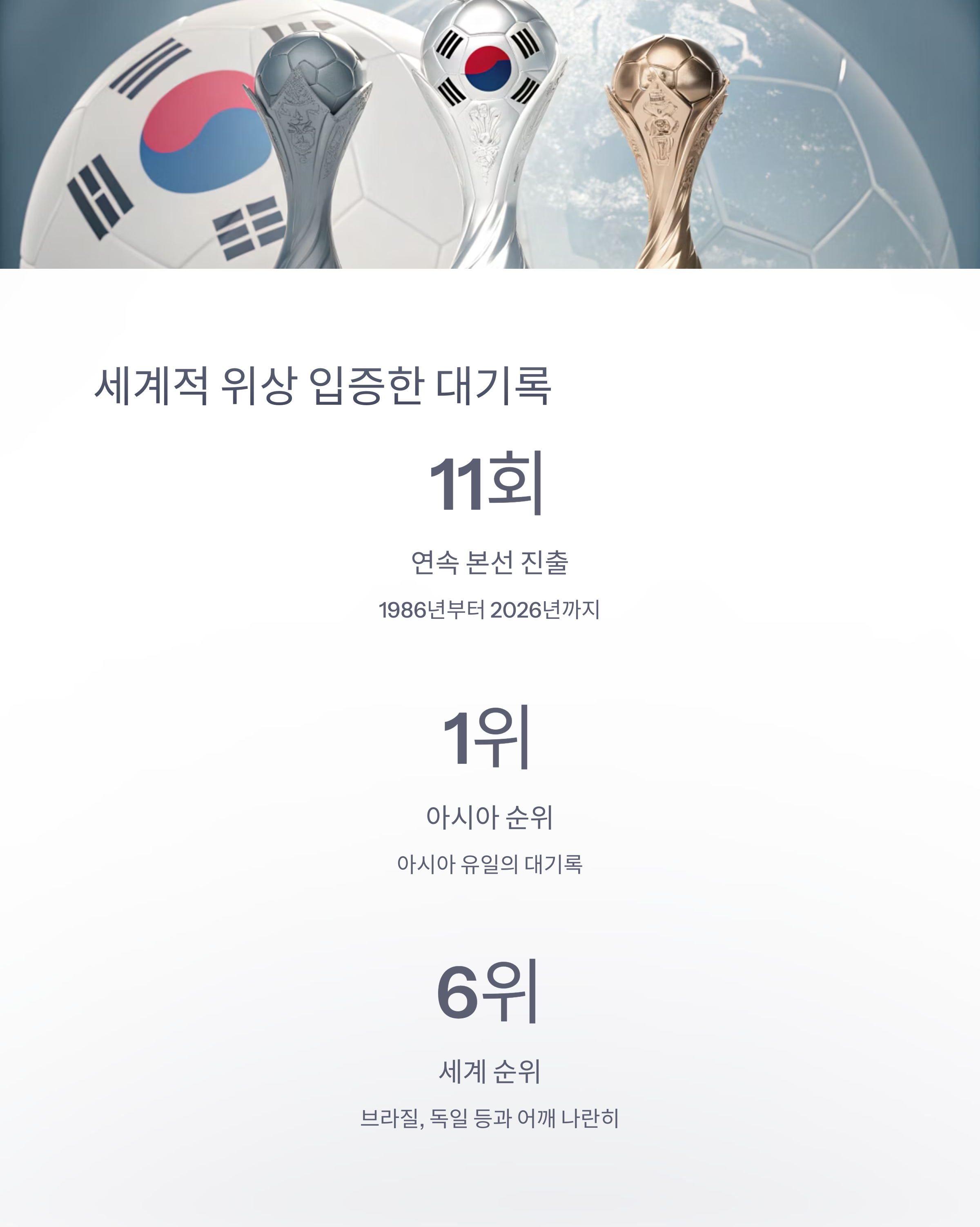 한국 축구의 세계적 위상을 증명하는 대표적인 지표가 되었습니다.