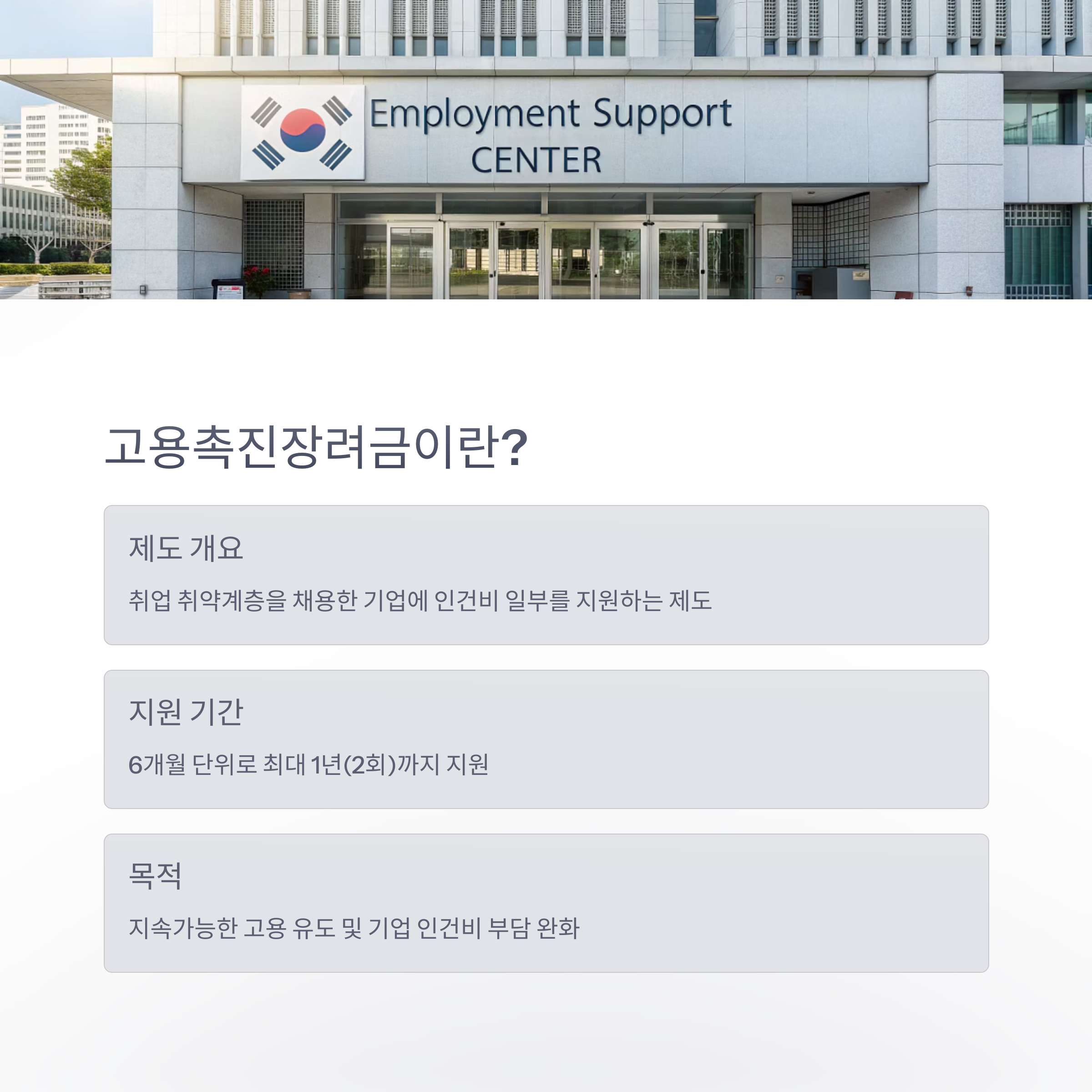 | 지원 목적 | 인건비 지원 + 고용 유지 촉진 |