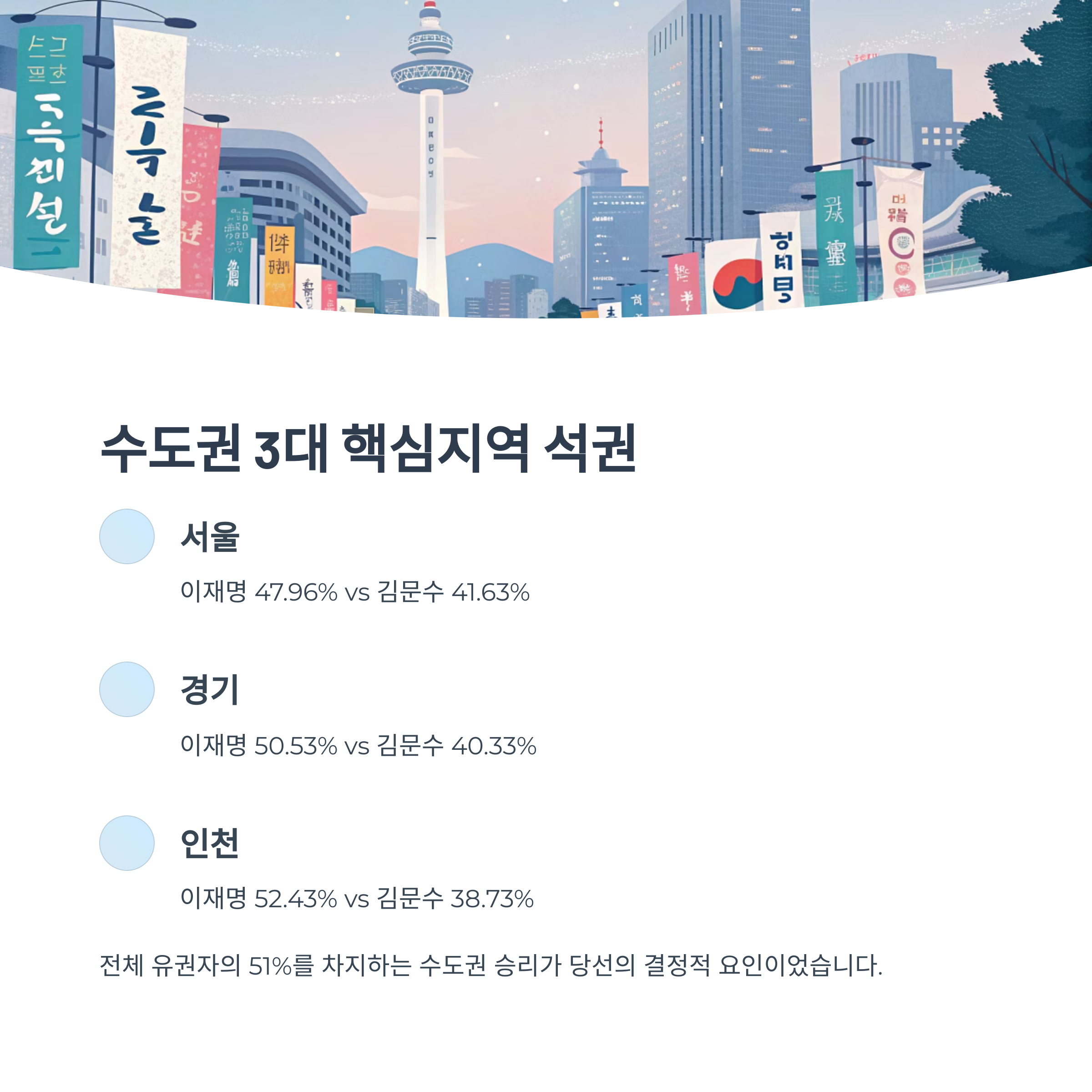 수도권 유권자만 전체의 51%에 달하는 만큼 이 지역 승리는 결정적 요인이었습니다